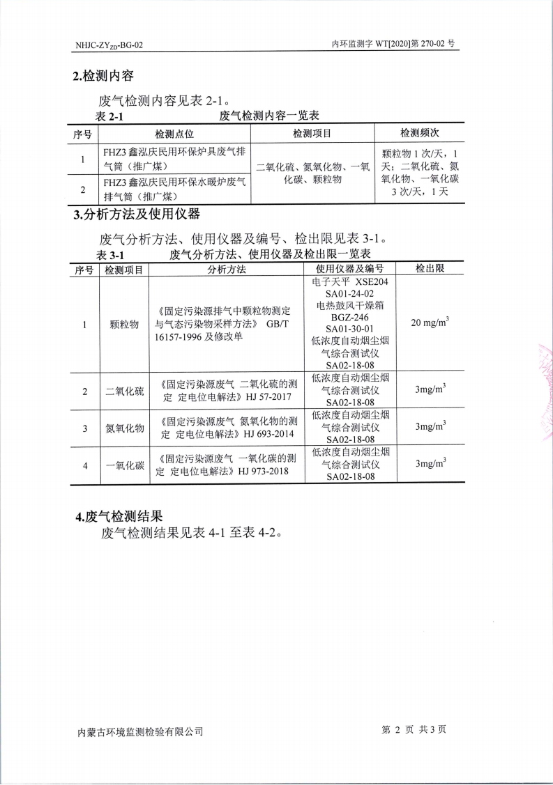 內(nèi)蒙古環(huán)境投資集團(tuán)檢測報告-低成本型煤廢氣檢測報告(干燒、水暖)